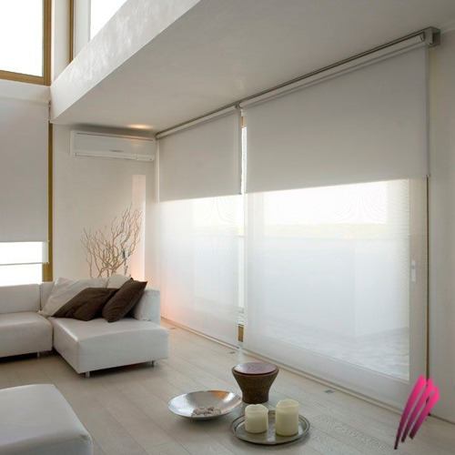 Cortinas Roller Dobles:contienen ambas cortinas en una sola pieza lo que permite mantener la luminosidad y vista del exterior ( tela Traslúcida y tela Blackout ), básicamente es emular la clásica opción de tener 2 cortinas en una misma ventana.
